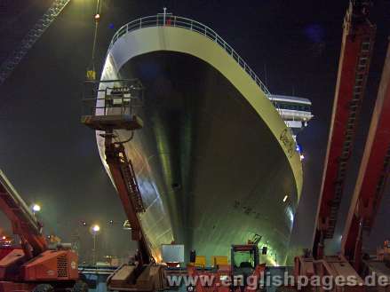nicolls d.zine - www.nicolls.de. Photos of Queen Mary 2 and the 2006 Hamburg Harbour Birthday - www.hafengeburtstag.de. Photos taken inside Blohm & Voss next to the dry dock, near the QM2 and from the top of a crane near the dry dock. The last few photos were taken from Landungsbrücken, the other side of the river from the dry dock - 22:00hrs to circa 2:00hrs. The blue goals - goal shaped neon lights - are there to mark the World Cup 2006. Thanks to RAIKE Kommunikation GmbH - www.raike.info, ThyssenKrupp Marine Systems, Cunard & Blohm & Voss for the invitation to take photos near the dry dock and for the refreshments. Permission to use or download photos is required. We reserve the right to send a bill/Rechnung to anyone/any company using photos without permission. Prior warning will not be given, if prior warning is not possible. One warning only. All rights reserved.