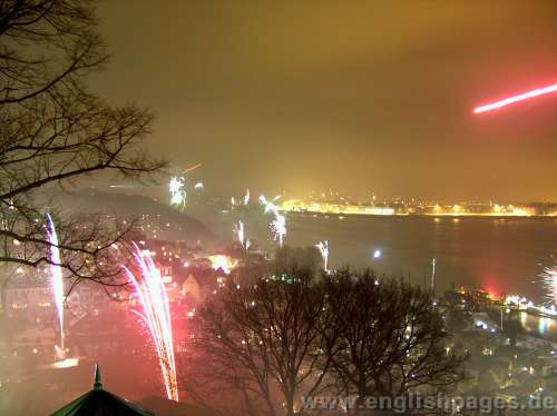 1st January 2006, just after midnight. View from Süllberg in Blankenese (Hamburg) high up over the River Elbe and from inside hotel events ballroom. A short 8 second video is available on this page - might be removed later in the year. It can be viewed by right clicking link, then ''Save as...'' or ''Speichern unter...'' and play from hard drive with Windows Media Player etc. Depending on how your computer is configured, it might open by simply clicking the link. All rights reserved. Photos by nicolls d.zine for Hamburg English Pages - select links on this page to open websites, or to go back to the Gallery Homepage.