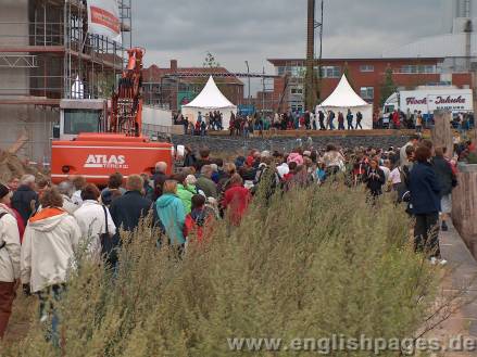 Hamburg Welcomes a Queen - Queen Mary 2 turns and the crowds gather. Photos by Chris Nicolls - www.englishpages. de / www.nicolls.de - All rights reserved (C). Permission to use the photos can be obtained from E-Mail: photo(AT)englishpages.de. Hamburg English Pages. There were no more photos taken after 4pm on 1st August 2005. The ship will visit Hamburg twice between November 2005 and July 2006. See Hamburg English Pages, Out & About page and select Ships